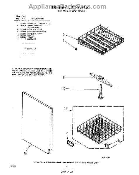 Parts for Whirlpool SDU40011: 06 - Dish Rack Parts