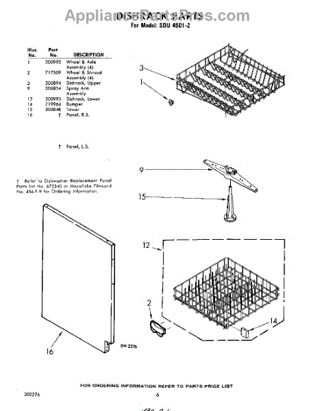 Parts for Whirlpool SDU45012: 06 - Dish Rack Parts