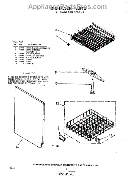 Parts for Whirlpool SDU50003: 06 - Dish Rack Parts