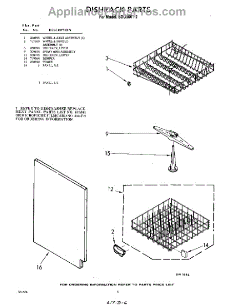 Parts for Whirlpool SDU50012: 06 - Dish Rack Parts