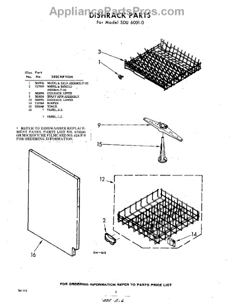 Parts for Whirlpool SDU60010: 06 - Dish Rack Parts