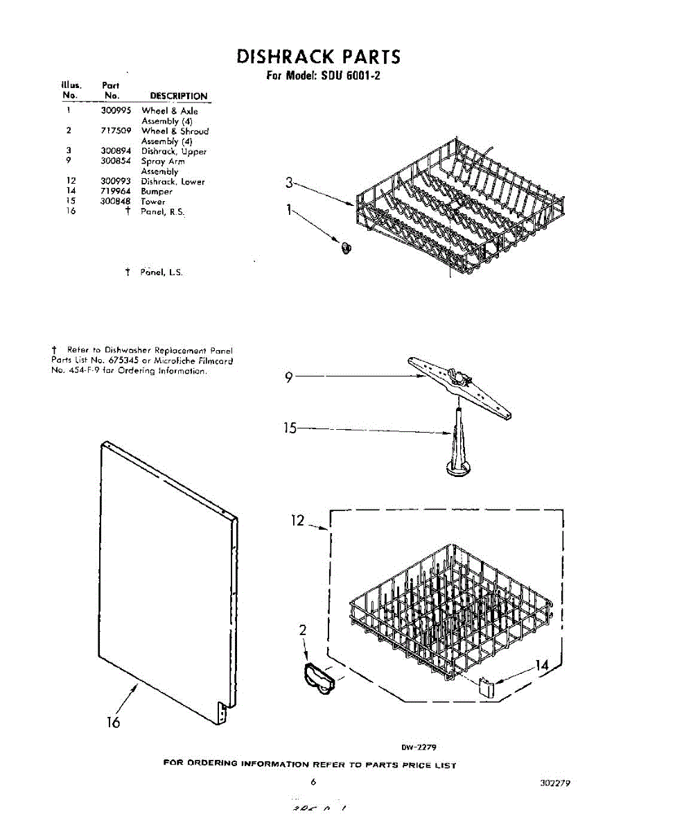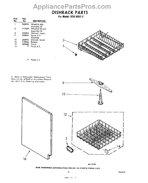 Parts for Whirlpool SDU60012: 06 - Dish Rack Parts
