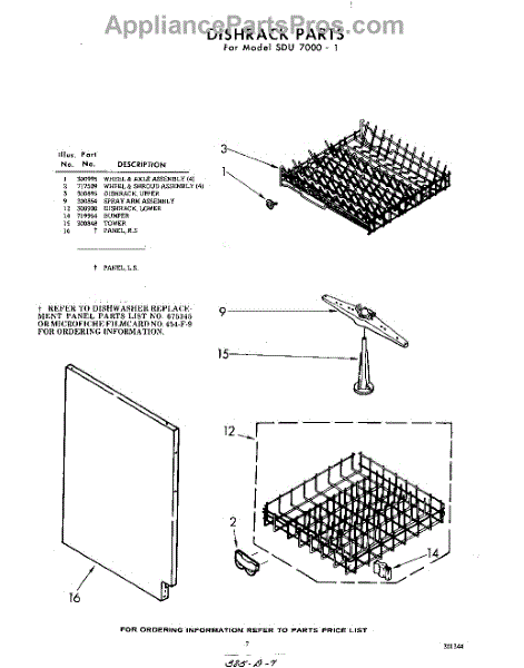 Parts for Whirlpool SDU70001: 07 - Dish Rack Parts