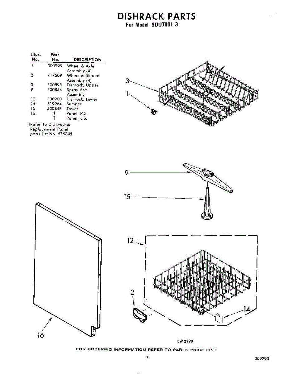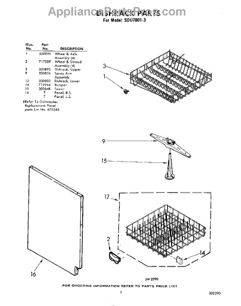 Parts for Whirlpool SDU70013: 07 - Dish Rack Parts