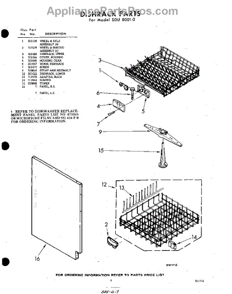 Parts for Whirlpool SDU80010: 07 - Dish Rack Parts