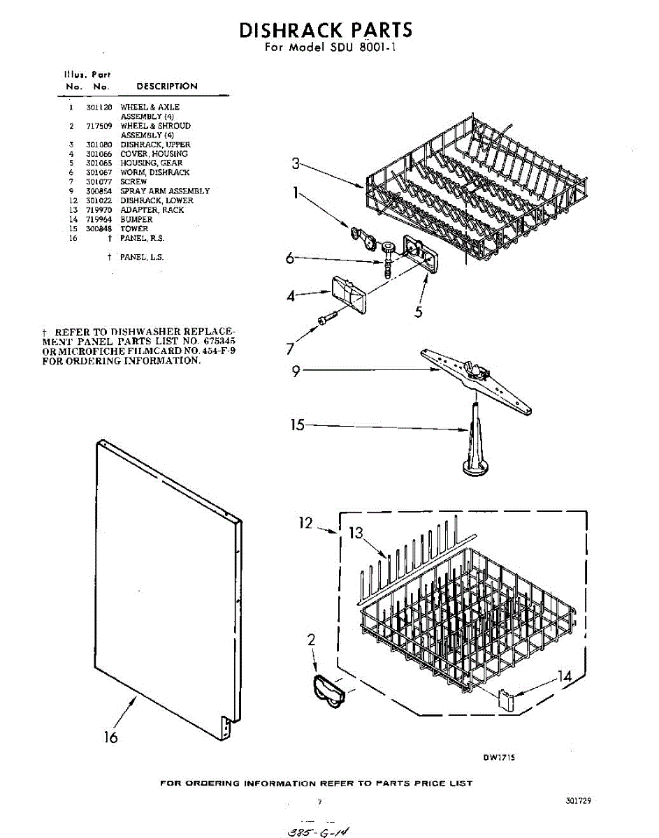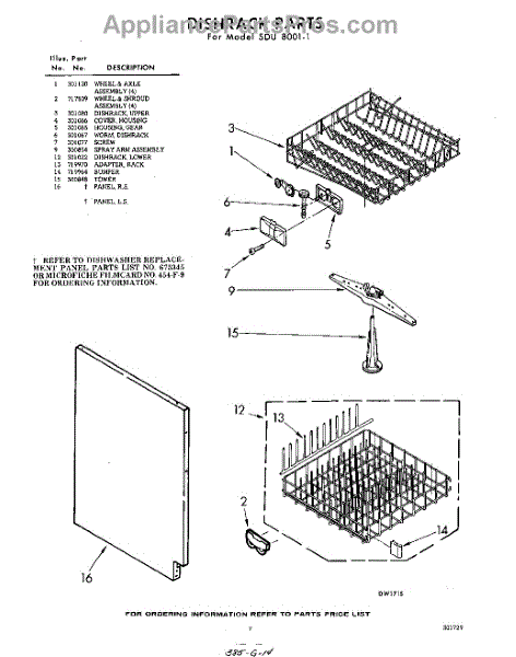 Parts for Whirlpool SDU80011: 07 - Dish Rack Parts