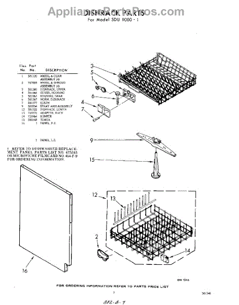 Parts for Whirlpool SDU90001: 07 - Dish Rack Parts