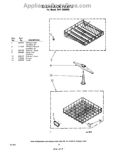 Parts for Whirlpool SHF5800W0: 08 - Dish Rack Parts