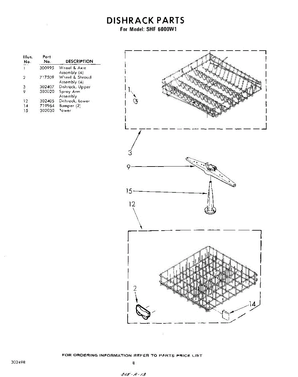 Parts for Whirlpool SHF6000W1: 08 - Dish Rack Parts