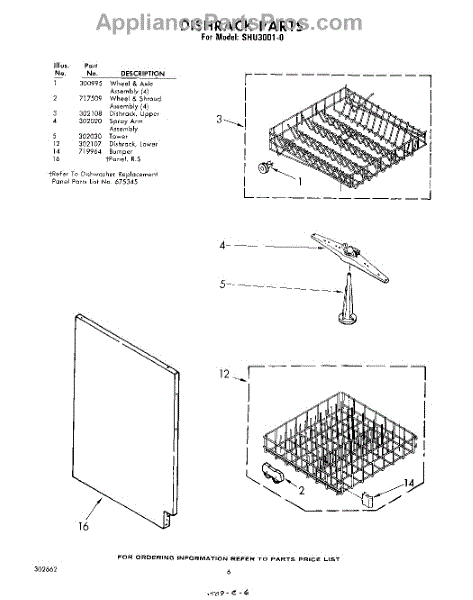 Parts for Whirlpool SHU30010: 06 - Dish Rack Parts
