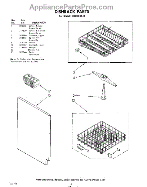 Parts for Whirlpool SHU30040: 06 - Dish Rack Parts