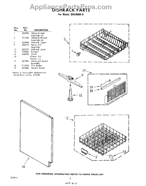 Parts for Whirlpool SHU40040: 06 - Dish Rack Parts