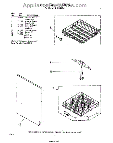 Parts for Whirlpool SHU50001: 06 - Dish Rack Parts