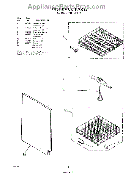 Parts for Whirlpool SHU50002: 06 - Dish Rack Parts
