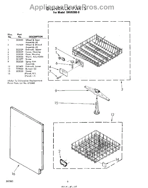 Parts for Whirlpool SHU55000: 06 - Dish Rack Parts