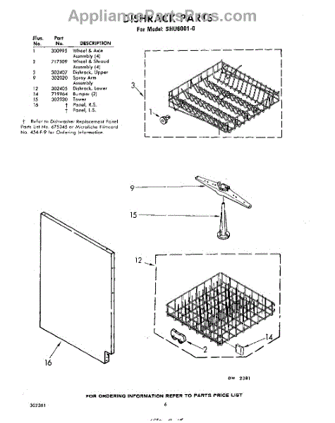 Parts for Whirlpool SHU60010: 06 - Dish Rack Parts