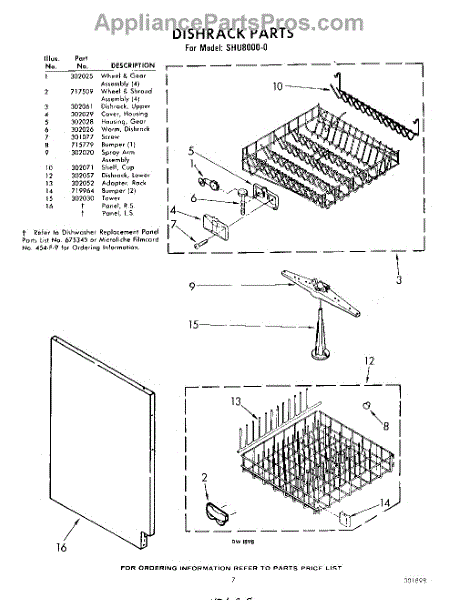 Parts for Whirlpool SHU80000: 07 - Dish Rack Parts