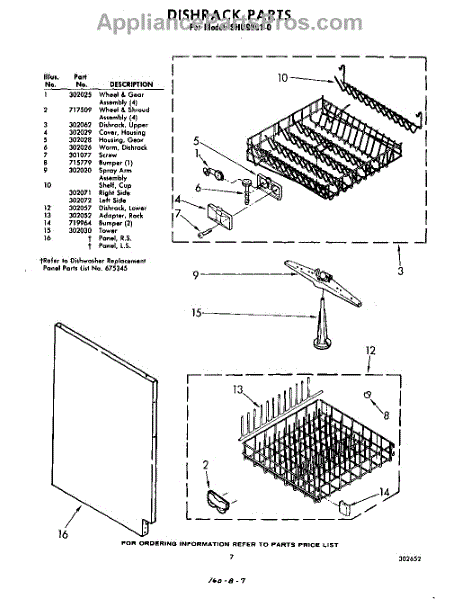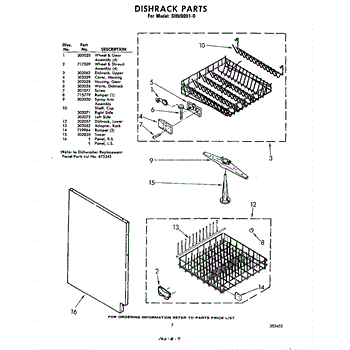 Parts for Whirlpool SHU90010: 07 - Dish Rack Parts