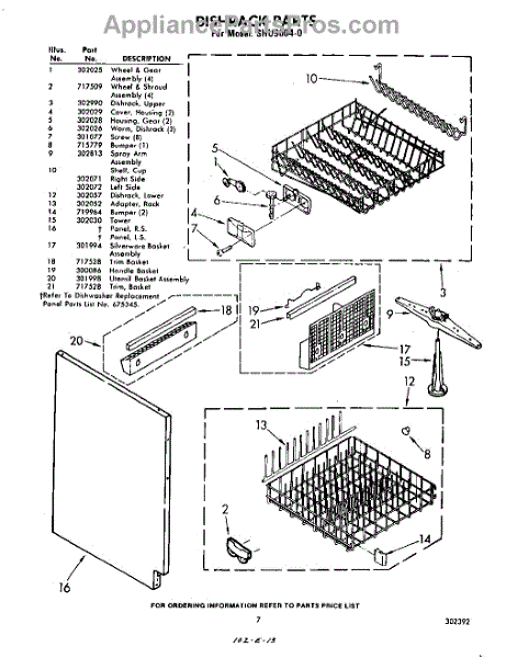 Parts for Whirlpool SHU90040: 07 - Dish Rack Parts