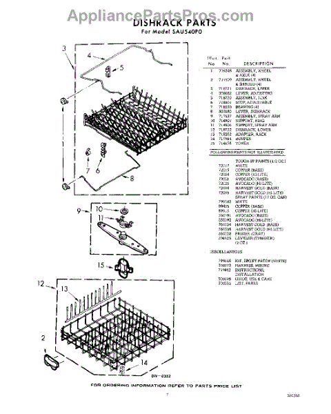 Parts for Whirlpool SAU540P0: 07 - Dishrack, Lit / Optional Parts