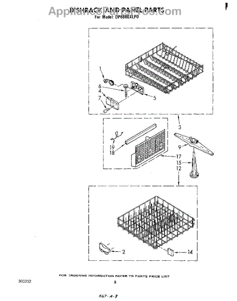 Parts for Whirlpool DP6880XLP0: 05 - Dishrack And Panel Parts