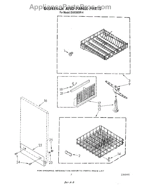 Parts for Whirlpool DU6000XR4: 05 - Dishrack And Panel Parts