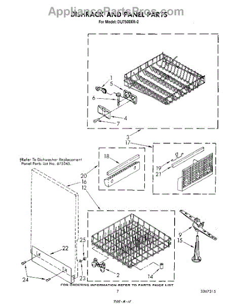 Parts for Whirlpool DU7500XR2: 05 - Dishrack And Panel Parts