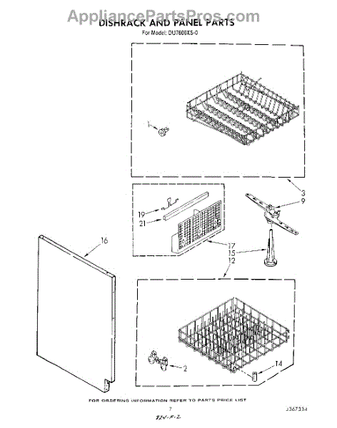 Parts for Whirlpool DU7600XS0: 05 - Dishrack And Panel Parts