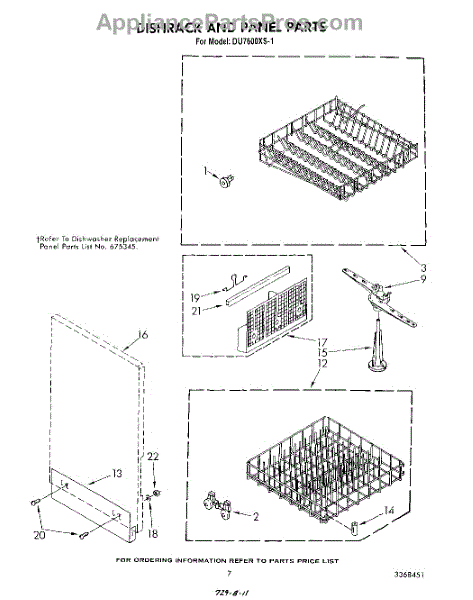 Parts for Whirlpool DU7600XS1: 05 - Dishrack And Panel Parts