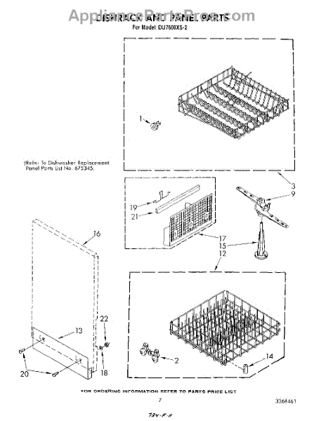 Parts for Whirlpool DU7600XS2: 05 - Dishrack And Panel Parts