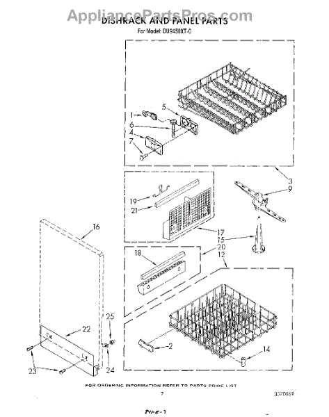 Parts for Whirlpool DU9450XT0: 05 - Dishrack And Panel Parts