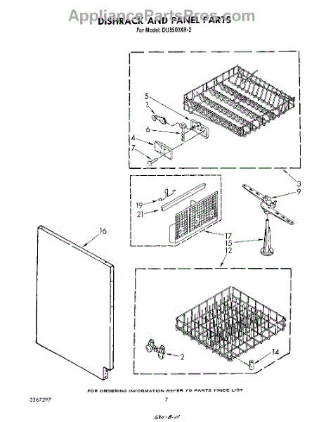 Parts for Whirlpool DU9500XR2: 05 - Dishrack And Panel Parts