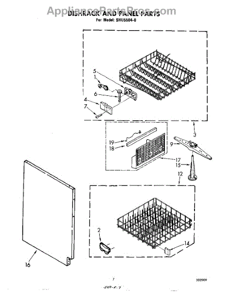 Parts for Whirlpool SHU55040: 05 - Dishrack And Panel Parts
