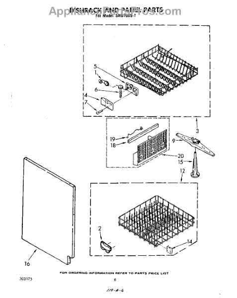 Parts for Whirlpool SHU70051: 04 - Dishrack And Panel Parts