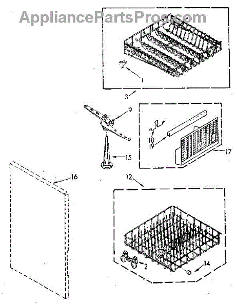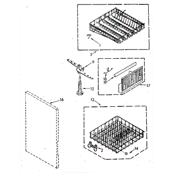 Lower dishrack assembly for dishwashers. Holds dishes, pots, and pans in the bottom section. Replace when rusted, cracked, or coating is worn or peeling.