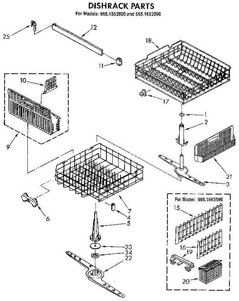 Replacement silverware basket for dishwasher lower rack. Holds utensils upright and separated during wash cycles. Order if yours is cracked or missing.