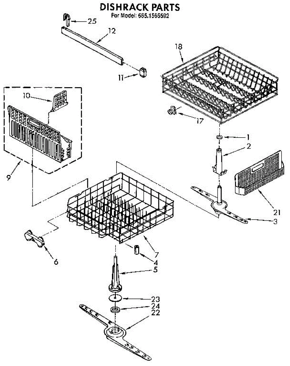 This replacement dishrack restores secure loading and proper spacing so wash water reaches every item. Replacing a bent or rusty rack helps prevent tipped dishes and marks from flaking rust, and keeps loading/unloading smooth when the rack rollers are intact.