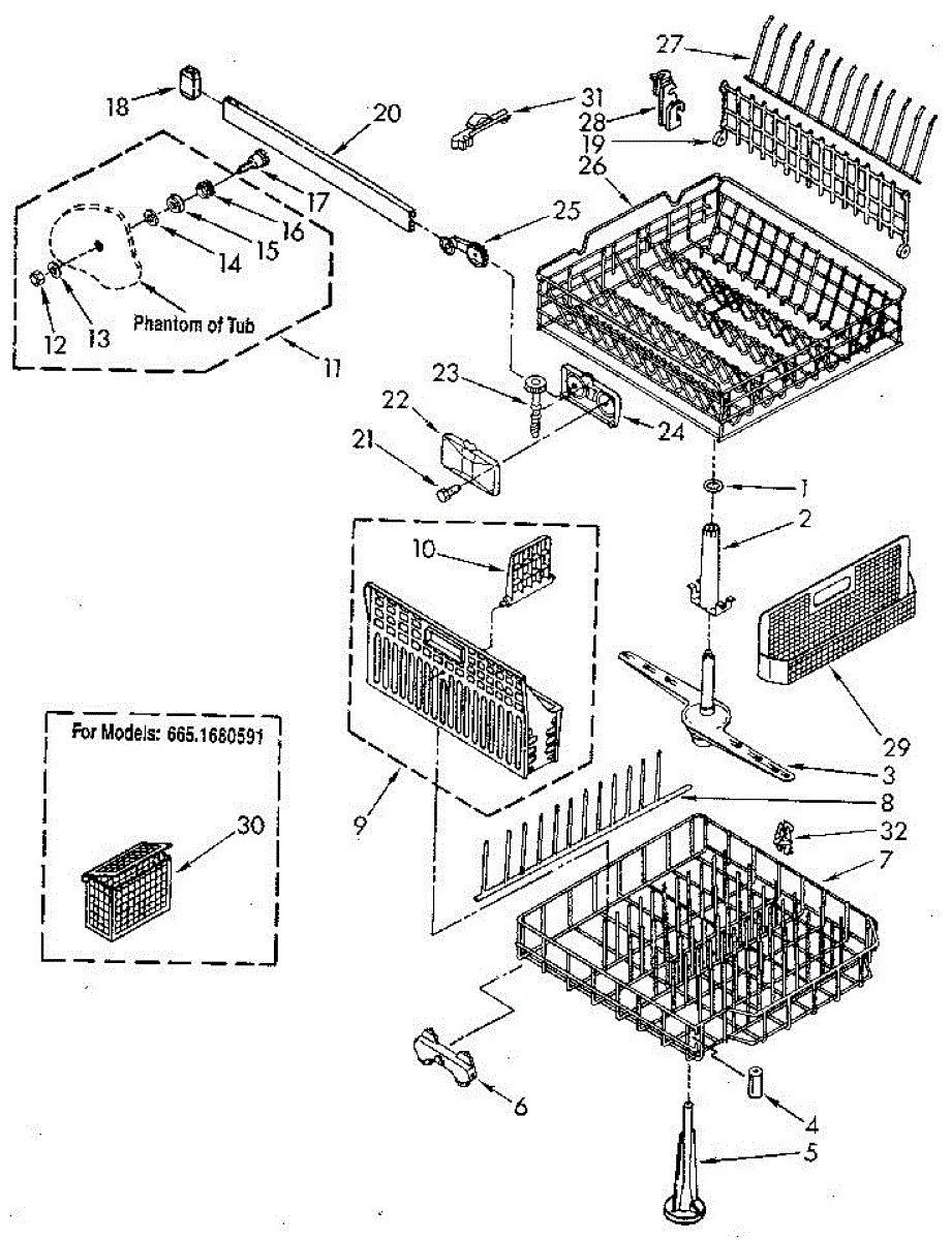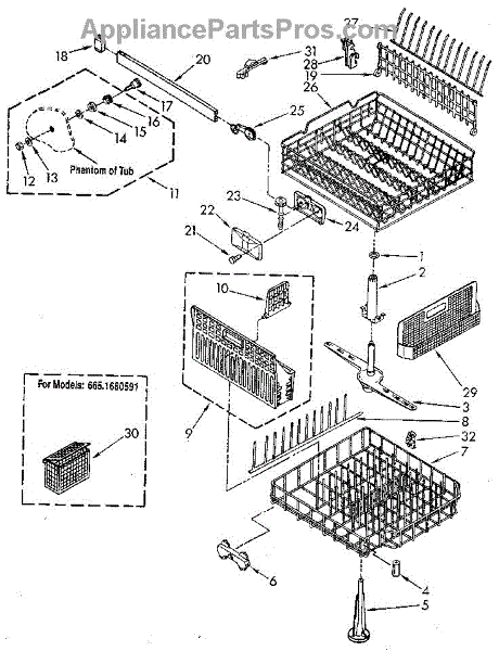 Lower dishrack assembly for dishwashers. Holds dishes, pots, and pans in the bottom section. Replace when rusted, cracked, or coating is worn or peeling.