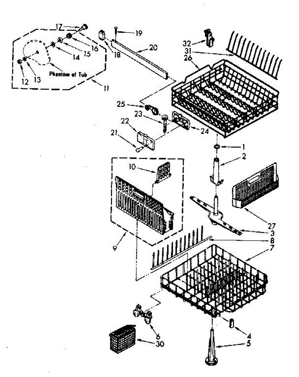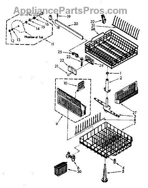 Lower dishrack assembly for dishwashers. Holds dishes, pots, and pans in the bottom section. Replace when rusted, cracked, or coating is worn or peeling.
