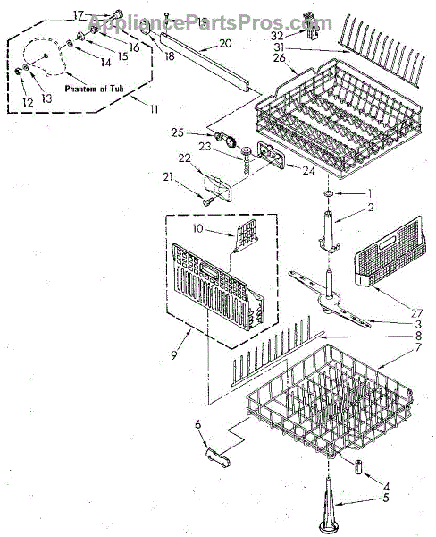 Lower dishrack assembly for dishwashers. Holds dishes, pots, and pans in the bottom section. Replace when rusted, cracked, or coating is worn or peeling.