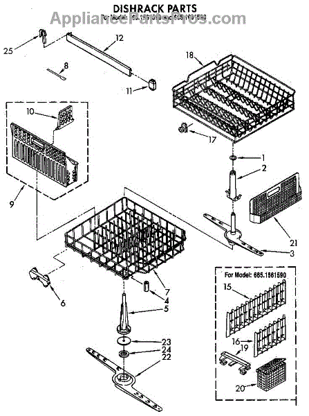 Replacement silverware basket for dishwasher lower rack. Holds utensils upright and separated during wash cycles. Order if yours is cracked or missing.
