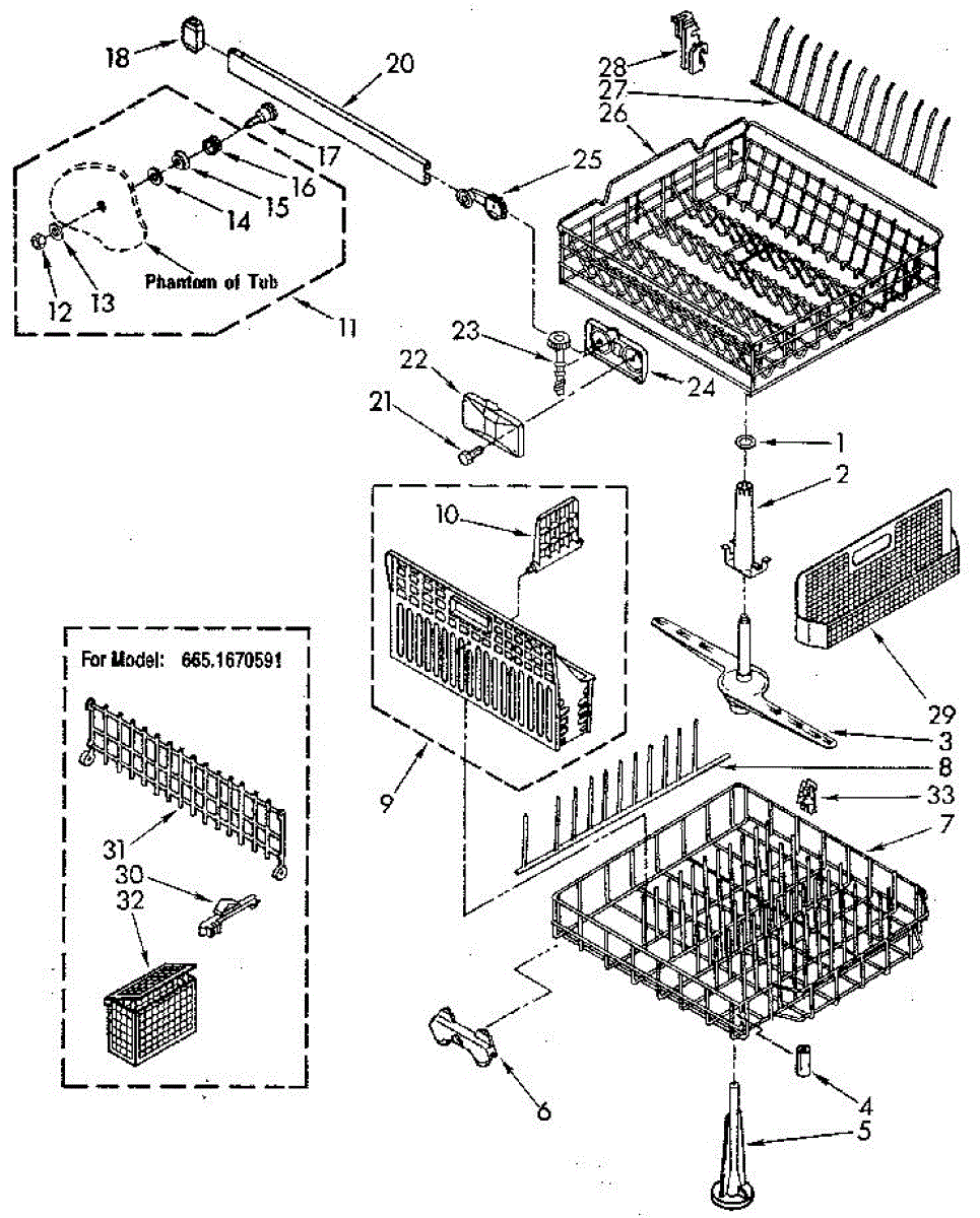 Parts for Kenmore 665.1670591 (6651670591, 665 1670591): Dishrack Parts
