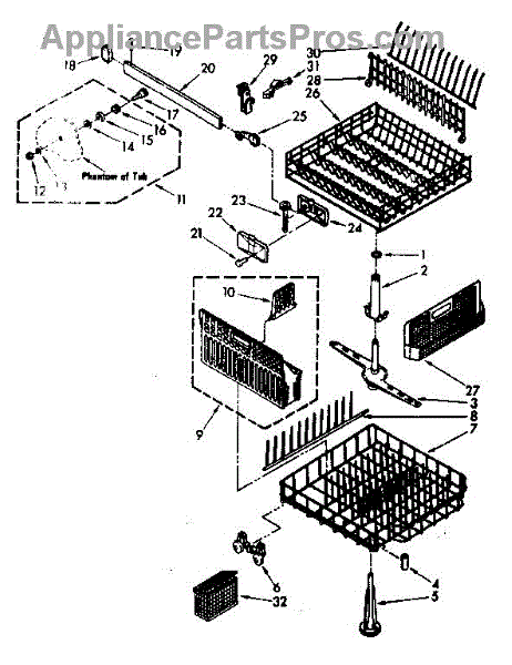 Lower dishrack assembly for dishwashers. Holds dishes, pots, and pans in the bottom section. Replace when rusted, cracked, or coating is worn or peeling.