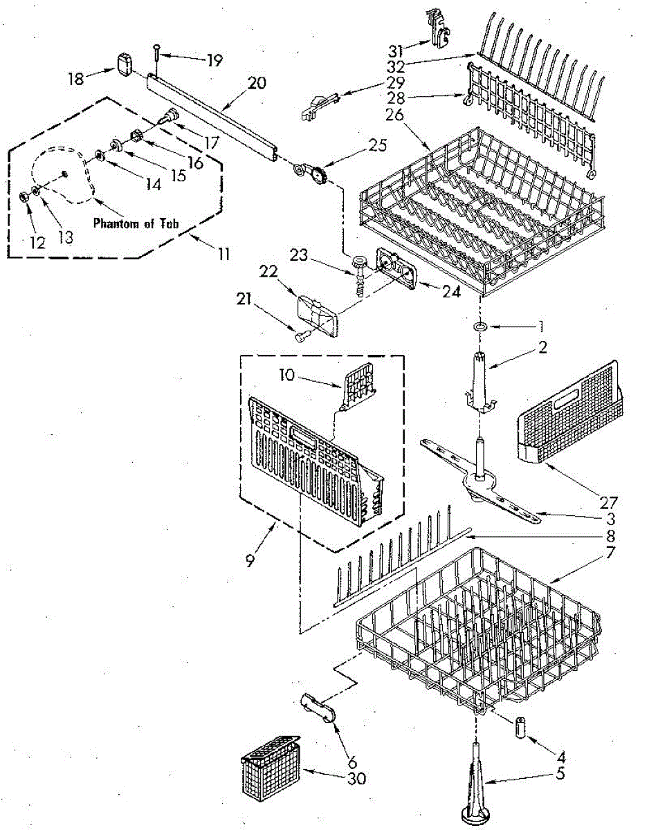 Lower dishrack assembly for dishwashers. Holds dishes, pots, and pans in the bottom section. Replace when rusted, cracked, or coating is worn or peeling.