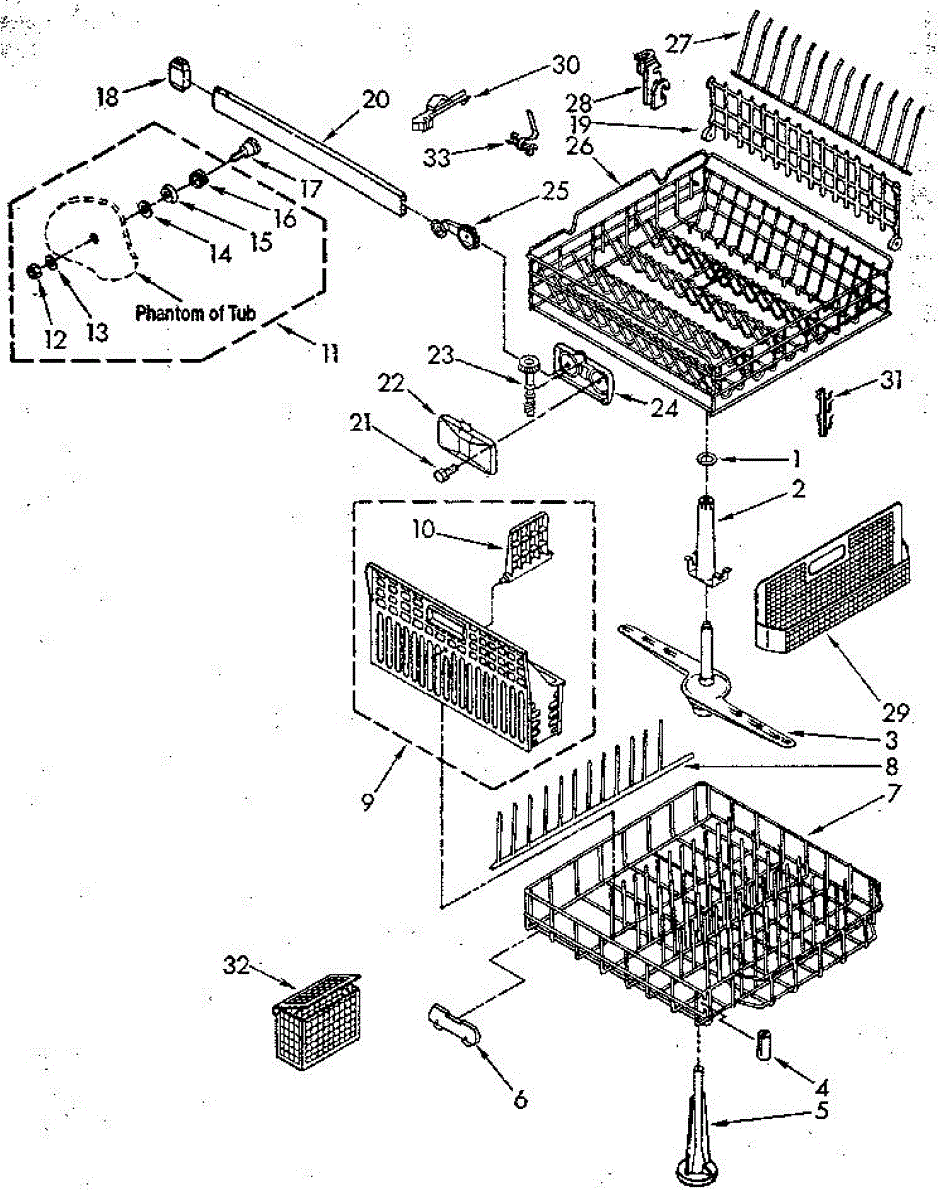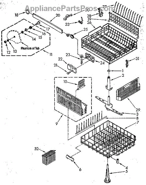 Lower dishrack assembly for dishwashers. Holds dishes, pots, and pans in the bottom section. Replace when rusted, cracked, or coating is worn or peeling.