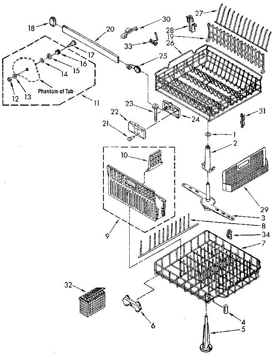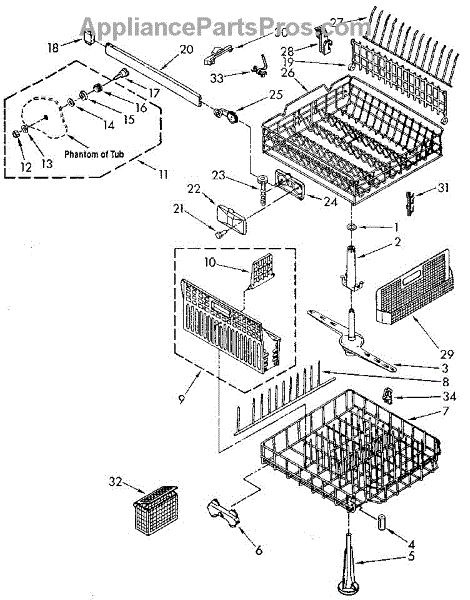 Lower dishrack assembly for dishwashers. Holds dishes, pots, and pans in the bottom section. Replace when rusted, cracked, or coating is worn or peeling.