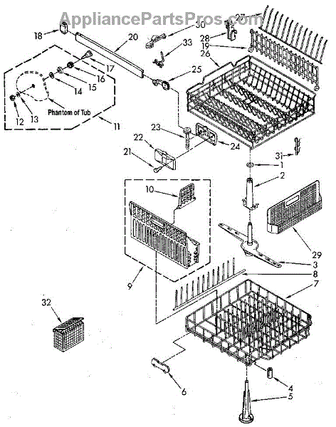 Lower dishrack assembly for dishwashers. Holds dishes, pots, and pans in the bottom section. Replace when rusted, cracked, or coating is worn or peeling.