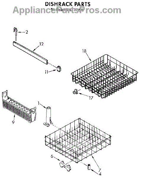 Lower dishrack assembly for dishwashers. Holds dishes, pots, and pans in the bottom section. Replace when rusted, cracked, or coating is worn or peeling.