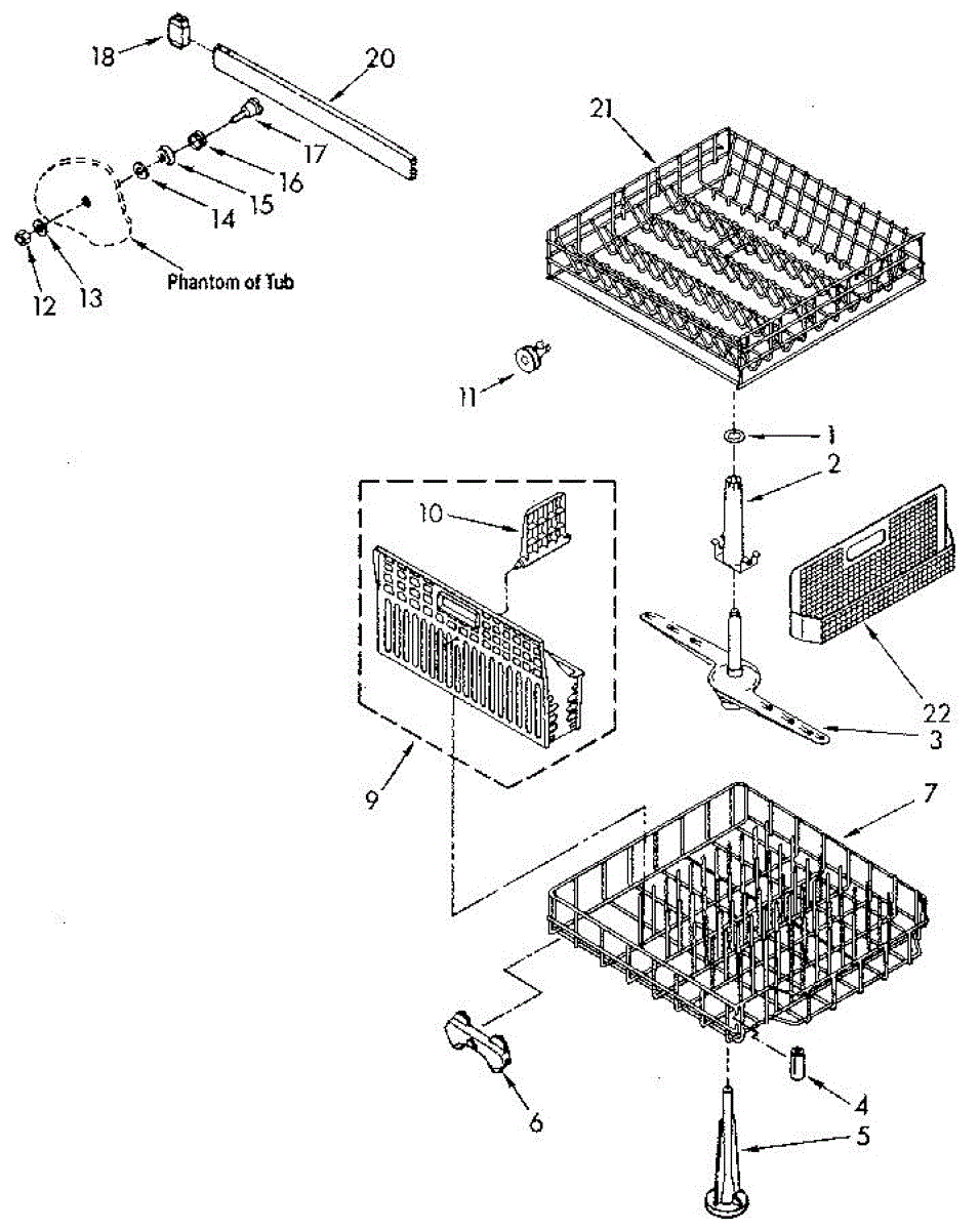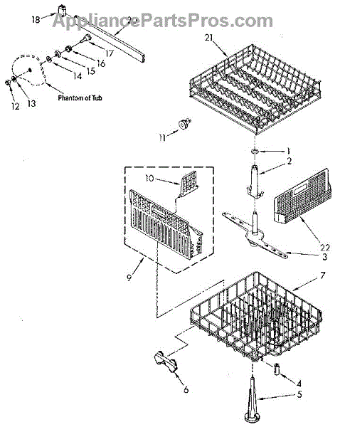 Lower dishrack assembly for dishwashers. Holds dishes, pots, and pans in the bottom section. Replace when rusted, cracked, or coating is worn or peeling.