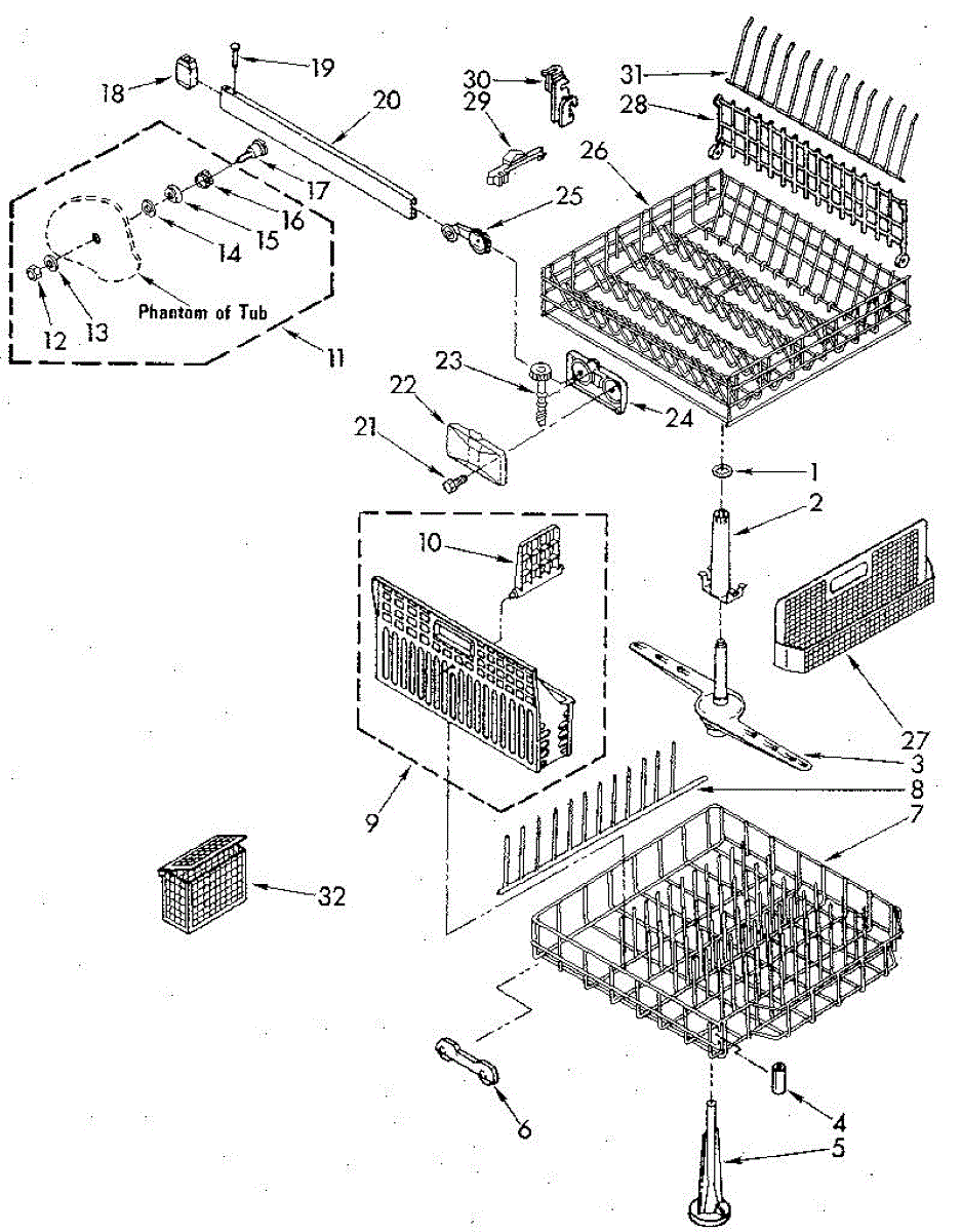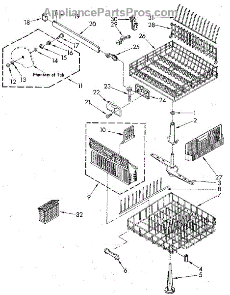 Lower dishrack assembly for dishwashers. Holds dishes, pots, and pans in the bottom section. Replace when rusted, cracked, or coating is worn or peeling.